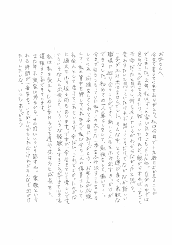 新入社員が社会人になってはじめての誕生日に、ご両親へ渡したお手紙2